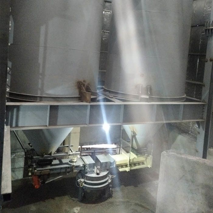 - Po ważeniu każdy materiał jest wysyłany do mieszarki, są dwie mieszarki, jedna praca jedna w stanie gotowości, a następnie po zmieszaniu w mieszarce, materiały zbiorcze są wysyłane do pieca hopper przez przenośnik.